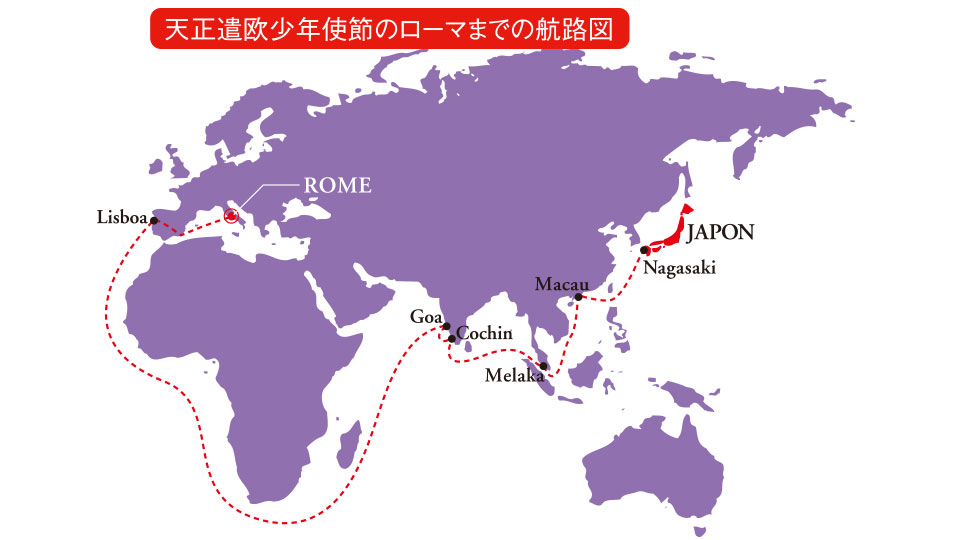 大村家第18代領主「大村純忠」は、1562年横瀬浦を開港して南蛮貿易を始め、後に長崎港を開港し今日の異国情緒あふれる長崎の端緒をつくりました。1563年に日本最初のキリシタン大名となり1582年には「天正遣欧少年使節」をローマに派遣したことで有名です。